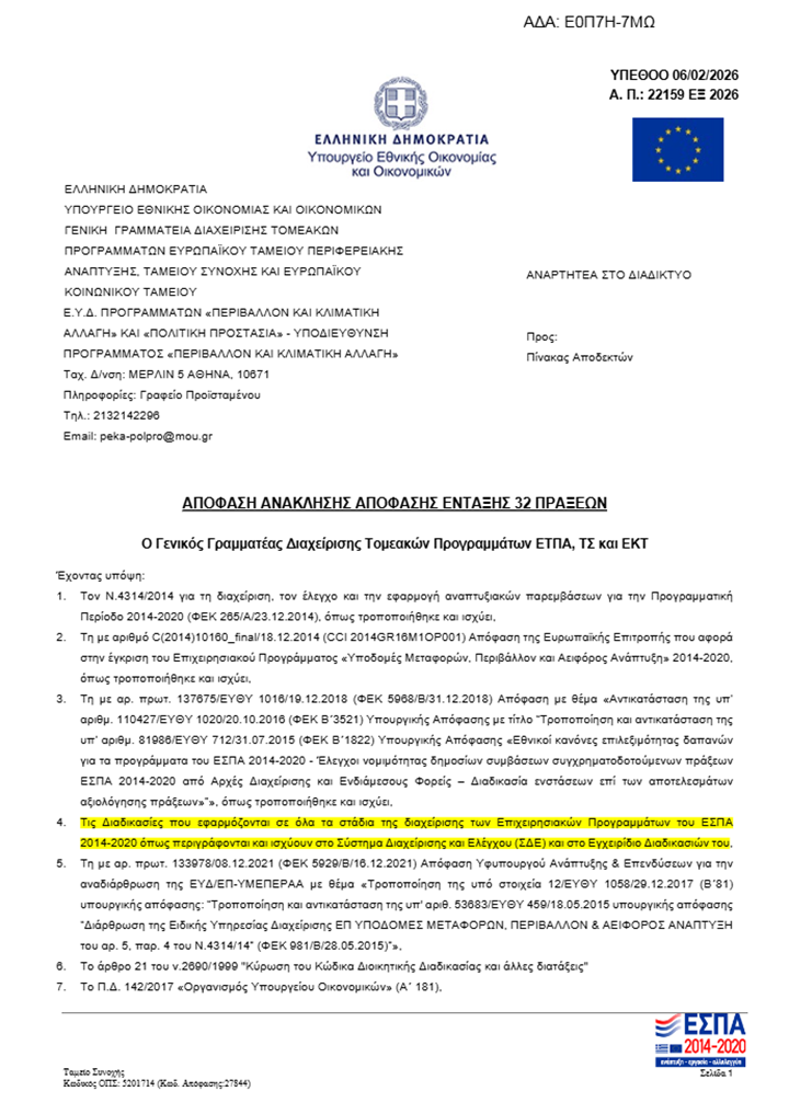 6 Şubat 2026 tarihli karar (ΑΔΑ Ε0Π7Η-7ΜΩ), belediye yönetiminin “bölgenin bayrak projesi” olarak tanımladığı bu yatırımın dramatik şekilde kaybedildiğini resmileştiriyor.