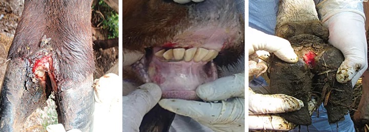 Hastalığa yakalanan hayvanlarda aşırı salya akıntısı, iştahsızlık, halsizlik, ateş, topallık, süt veriminde düşüş, kabarcıklar ve lezyonlar görülür. Ayrıca düşükler ve yenidoğanlarda ani ölümler meydana gelebilir. Tırnakların arası ve tabanında lezyonlar, genellikle topallık ile birlikte görülür. Ağız boşluğu ve dilde salya akıntısı, aşınmalar ve yaralar ortaya çıkar. Koyun ve keçilerde ise çoğu zaman çok hafif belirtiler görülür, bu da hastalığın fark edilmesini zorlaştırır.
